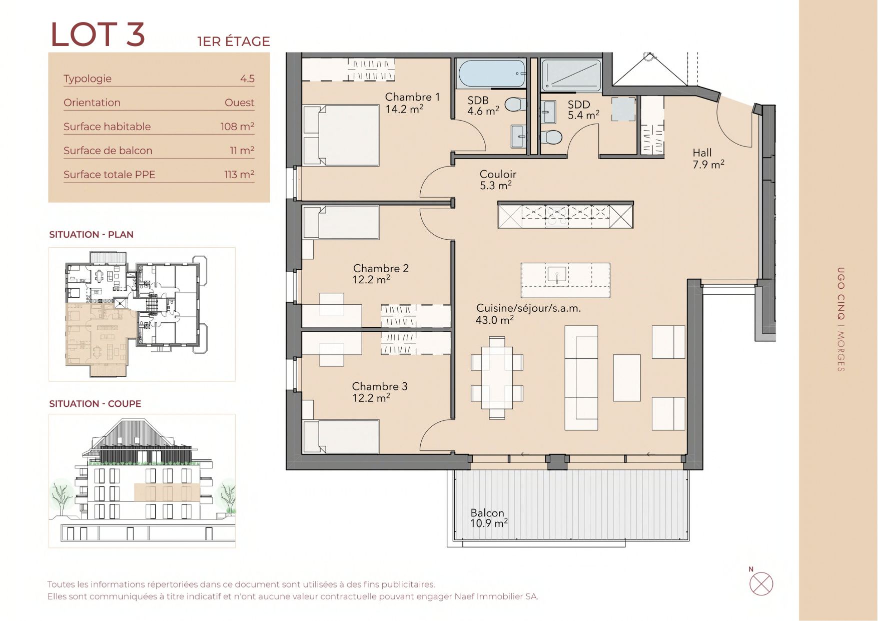 | 3 | 4.5 | 1er | 113 m2 | vendu | ||||||
